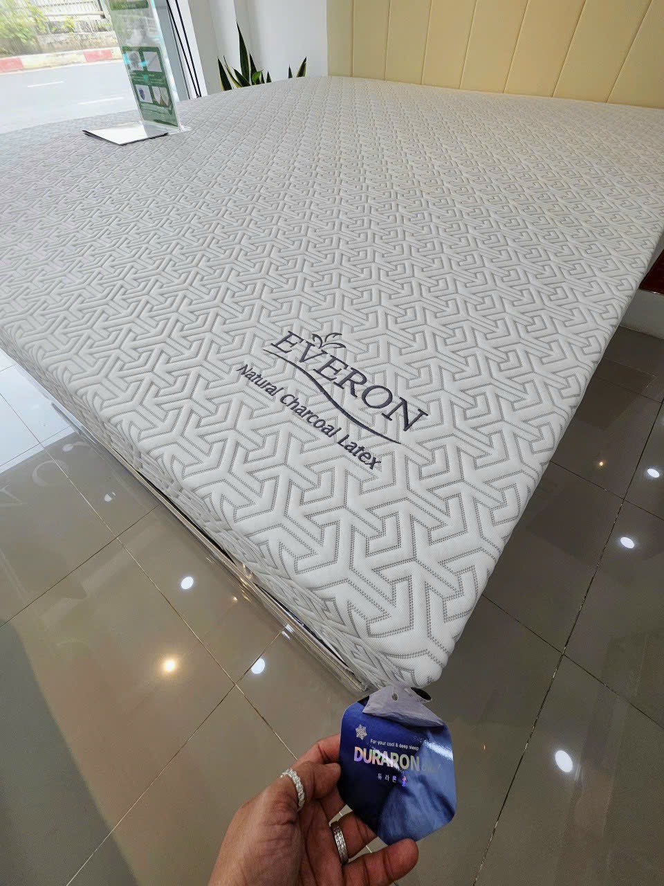 Trước khi đặt nệm cao su EVERON bạn cần kiểm tra xem bề mặt đã phẳng hay chưa nhằm đảm hạn chế tối đa nệm không bị cong vênh trong quá trình sử dụng. Đặc biệt trước khi mua bạn cần chọn sản phẩm phù hợp với kích thước giường ngủ của mình sao cho cách cạnh giường 3 - 5cm. Và tuyệt đối không chọn kích thước nệm quá lớn so với giường và ngược lại. Như vậy độ bền của nệm sẽ lâu hơn.